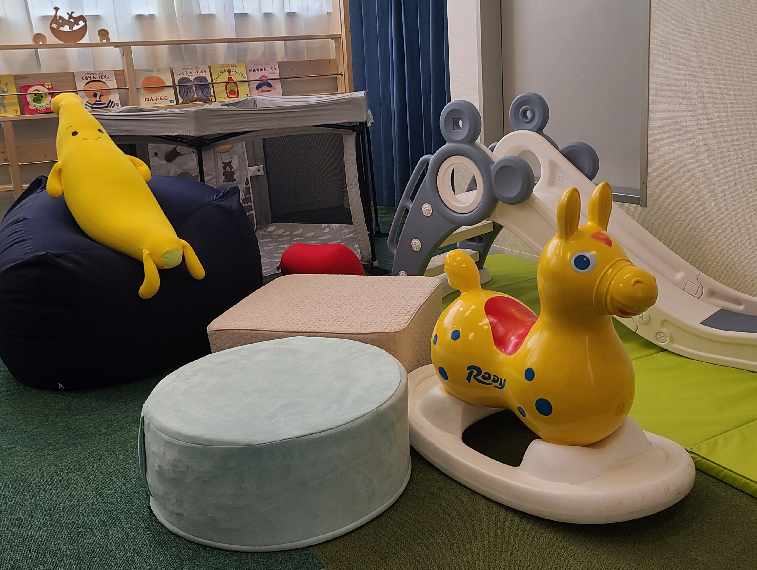 こちらのサロンにはすべり台やおもちゃ(必要であればベビーサークルなど)があります。