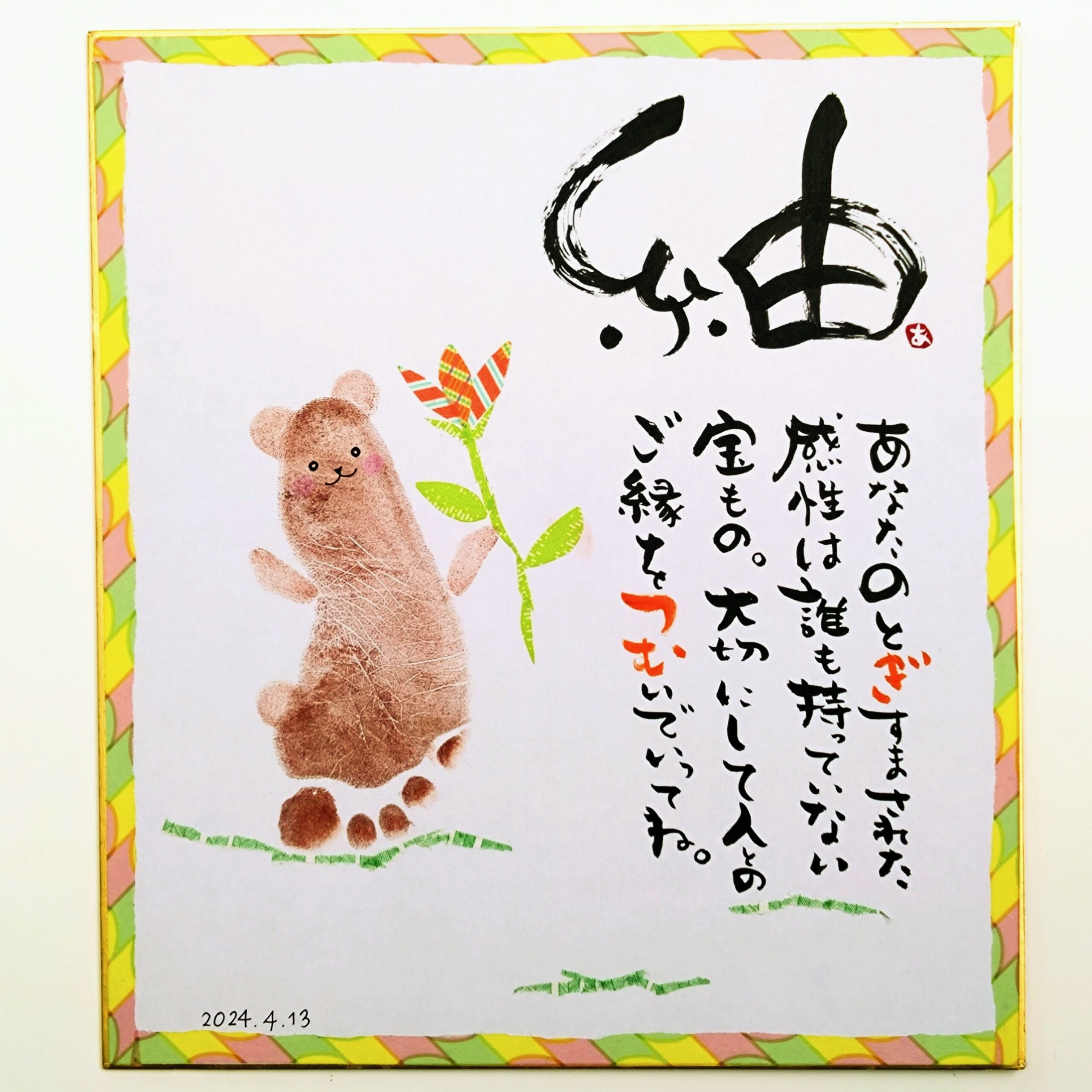 手形アートに筆文字おなまえポエムを添えた作品などが作れます。