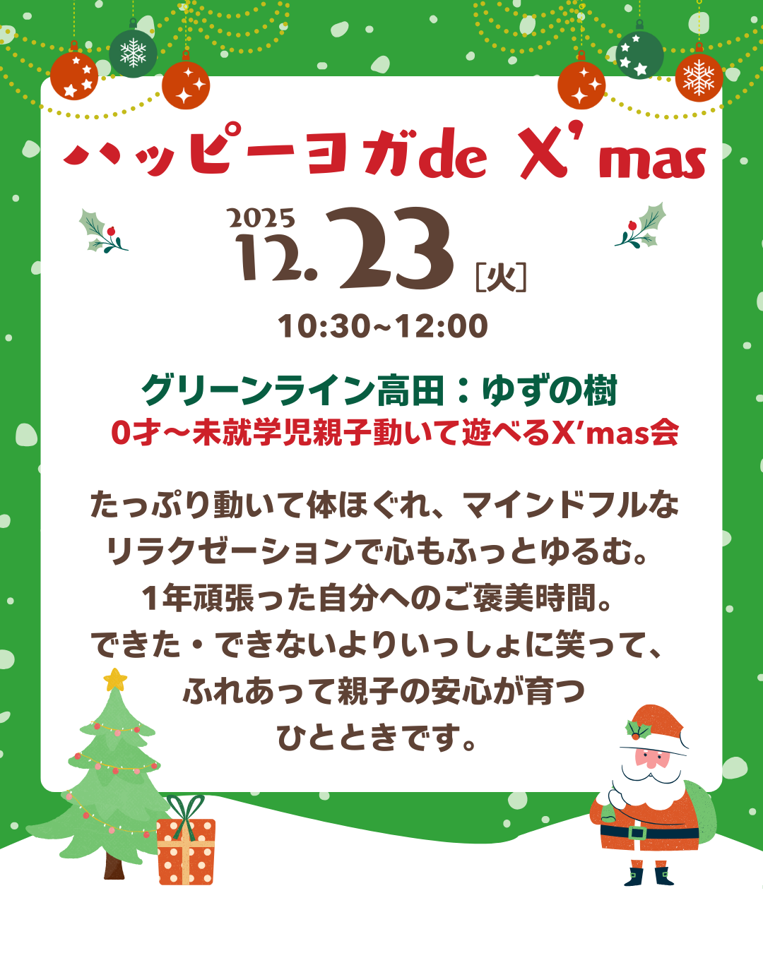 親子で動いて、笑って、ココロとカラダがふわっとゆるむクリスマスイベント開催です!
