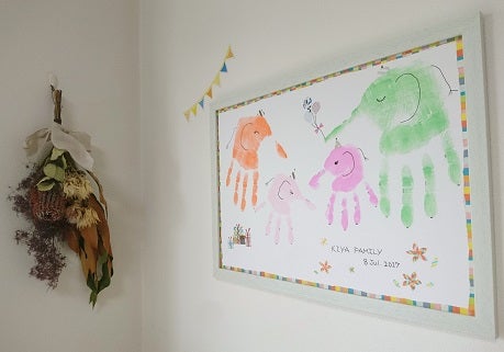 兄弟一緒のアートや、記念日アートのほか、パパやママも一緒に作るファミリー手形もお受けします