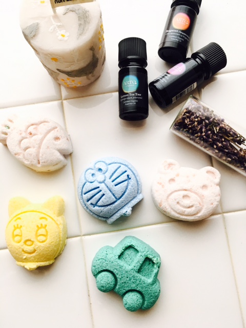 自然素材だけで作る贅沢なバスボム。お子さんが喜ぶドラえもんやドラミちゃん、ハートや星の形にお子さんもワクワク。