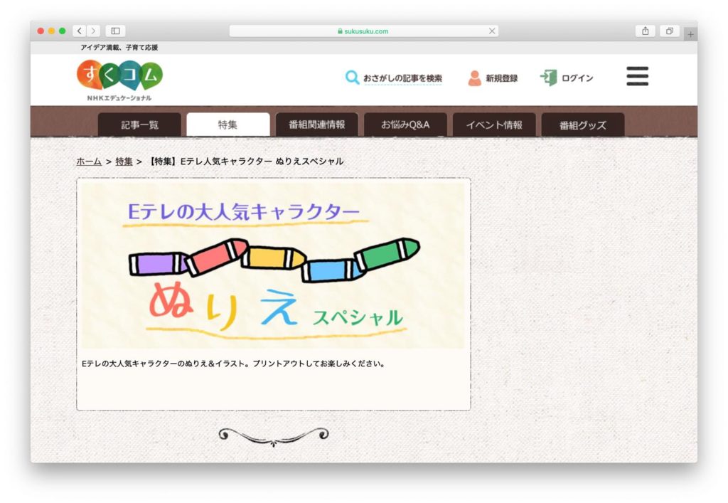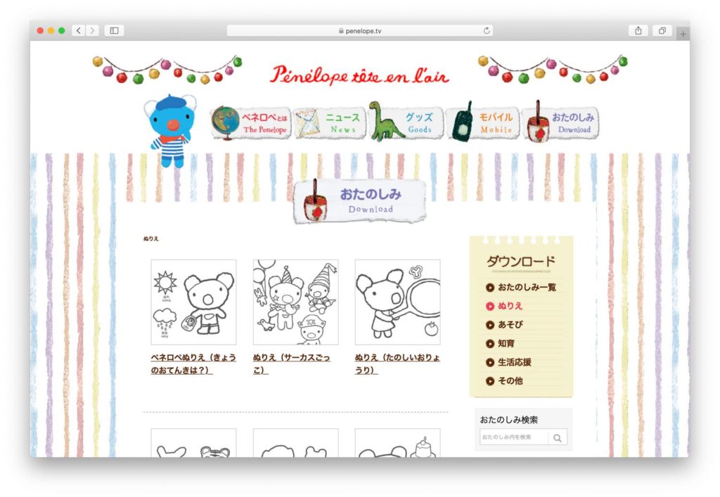 柔らかで優しい線のイラストで、少しくらいはみ出してもおしゃれな作品になりそうなのがペネロペのぬりえ。公式サイトではほかにも、お絵かき遊びや知育コンテンツなどが掲載されています。