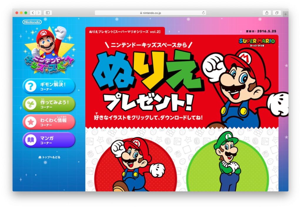 ニンテンドーの公式サイトには、ゲームの人気キャラクターのぬりえがいっぱい。ページを下にスクロールすると、他のコンテンツへのリンクがあります。お面やペーパークラフトなども!