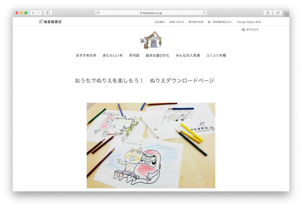 出版社・福音館書店のホームページでは「ぐりとぐら」「だるまちゃんとてんぐちゃん」など人気絵本のぬりえがダウンロードできますよ。指定のマスを指定の色で塗って遊ぶ「どっとこ・ぬりえ」も楽しい!