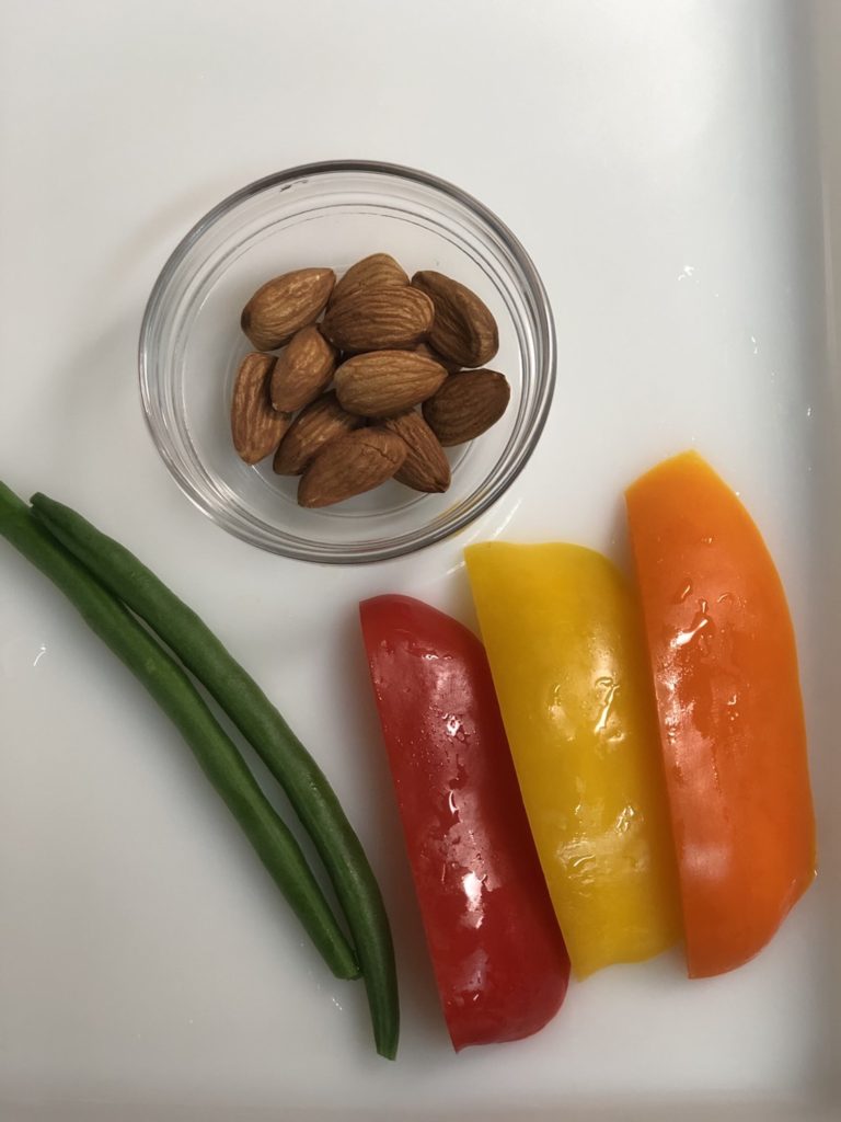 ●(いんげん)2本 : 4㎝斜め細切り→ →オイルコーティング【アドバイス】参照