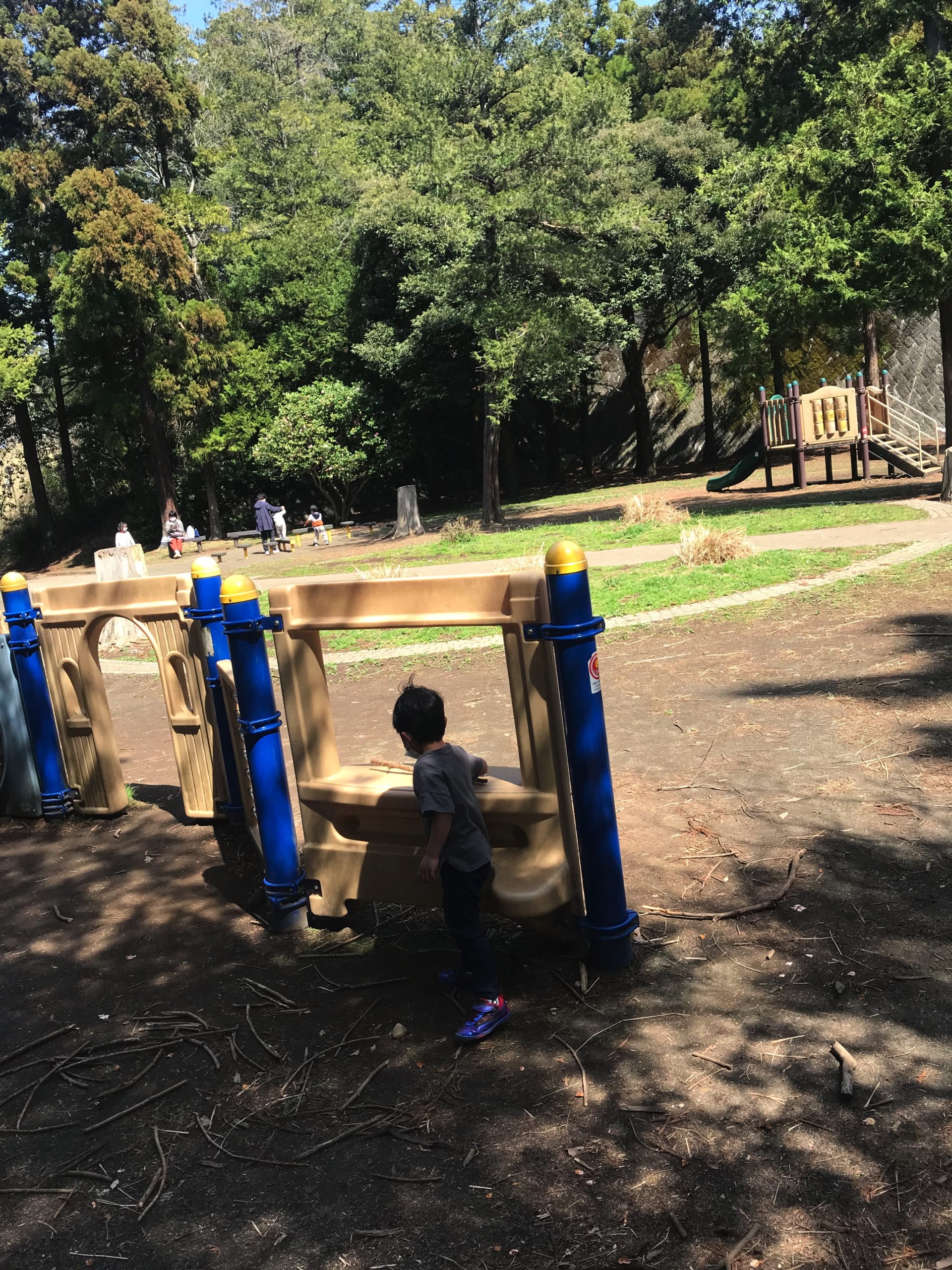 ここの遊具は、6歳までは付き添いが必要とのことで工夫が必要です。