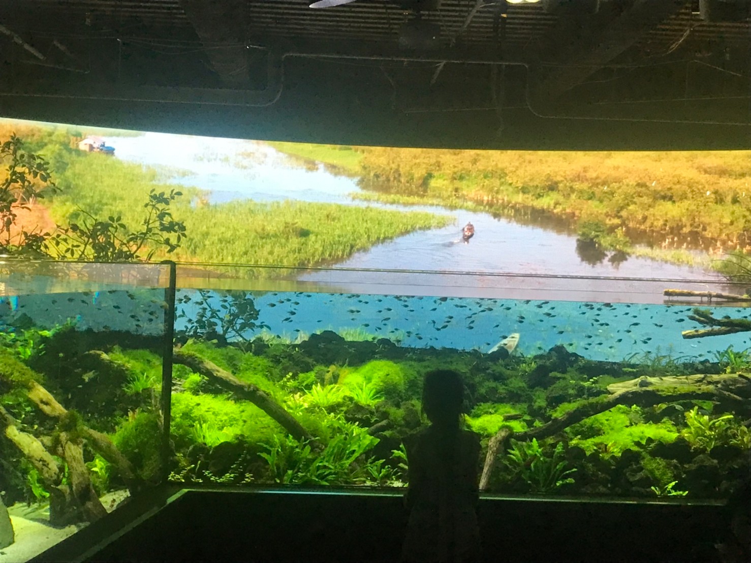 多摩川ゾーンは、映像と水槽が一体化した演出が素敵。まるで本当に多摩川にいるかようです。